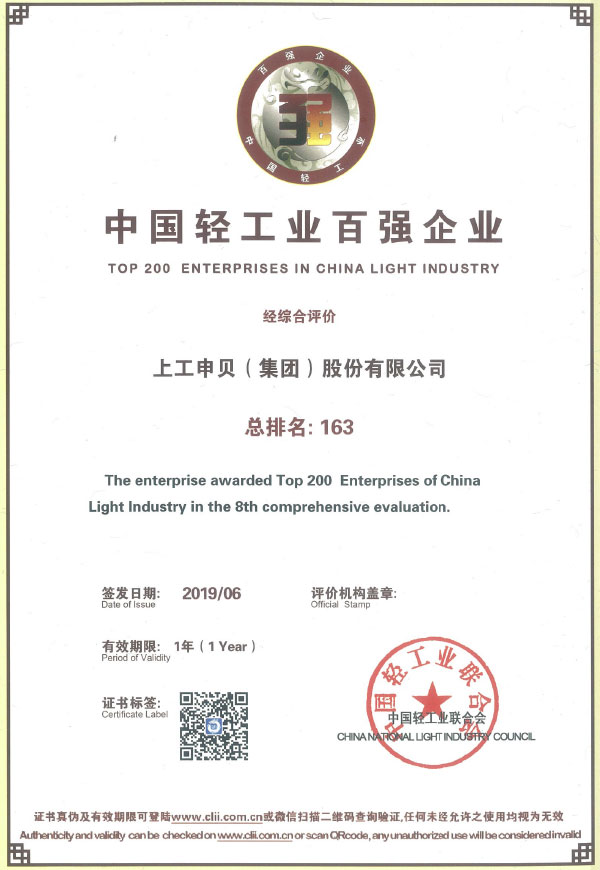Top 100 Chinese Light Industry Enterprises (ranked 163rd)