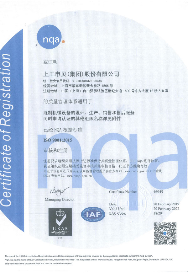 Quality Management System Certification Certificate of Shanggong Group Company
