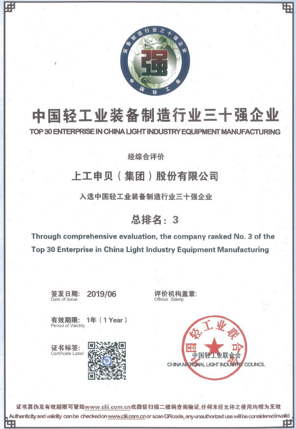 Top 30 Enterprises in China's Light Industry Equipment Manufacturing Industry (ranked third)